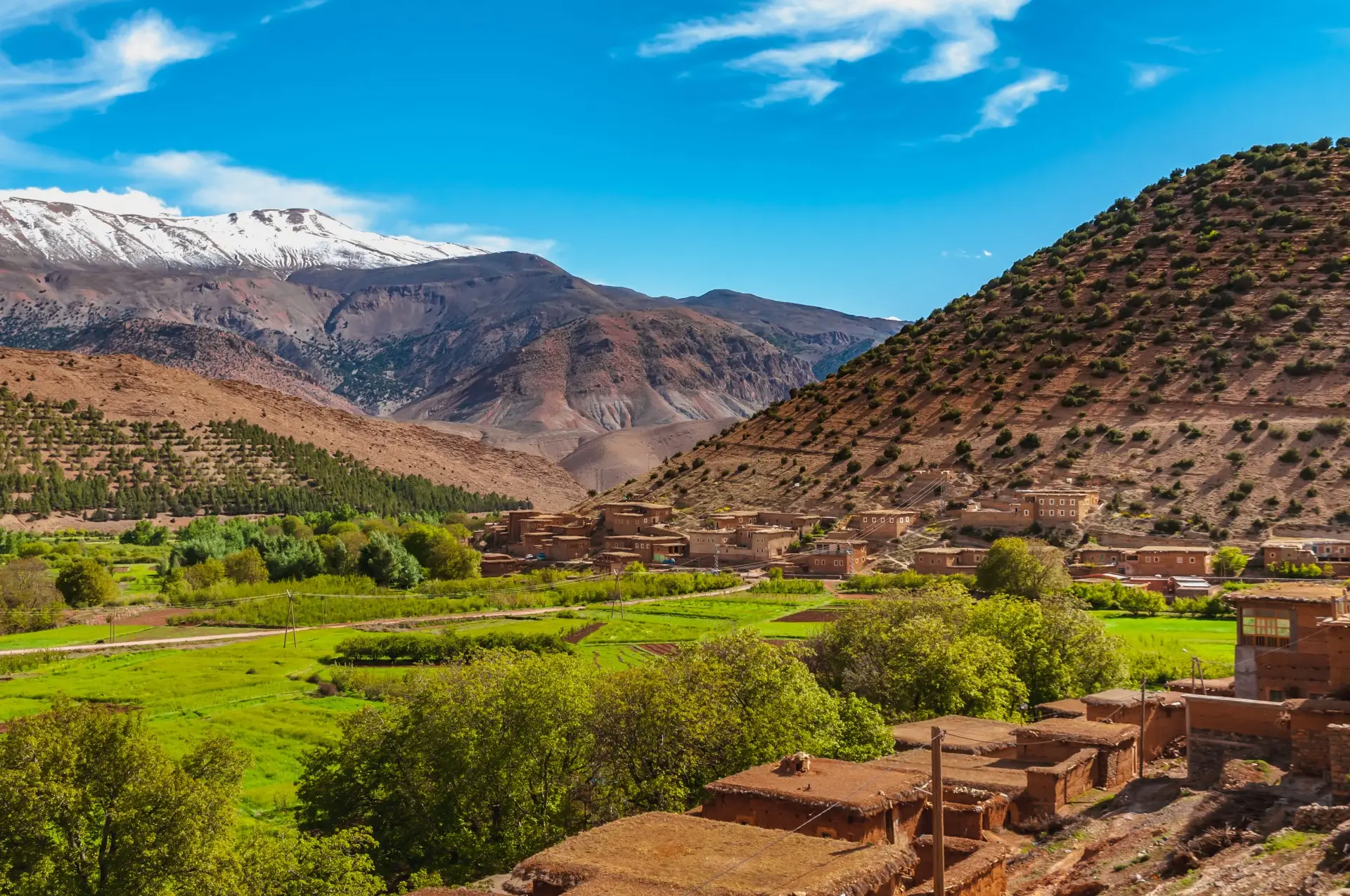 Es liegt zwischen 1900 m und 2400 m Höhe. Das Bergwasser der kleinen Flüsse macht das Tal grün und fruchtbar. Mächtige Nussbäume, Apfelbaumplantagen, wogende Getreidefelder und gepflegte Gärten sind zwischen traditionellen Berberdörfern eingebettet. Während dieser Wanderung entdeckst Du dieses wunderschöne Tal und übernachtest in familiengeführten Berghütten. Du wirst mit typischen marokkanischen Gerichten verwöhnt und erhältst Einblicke in die Berberkultur.