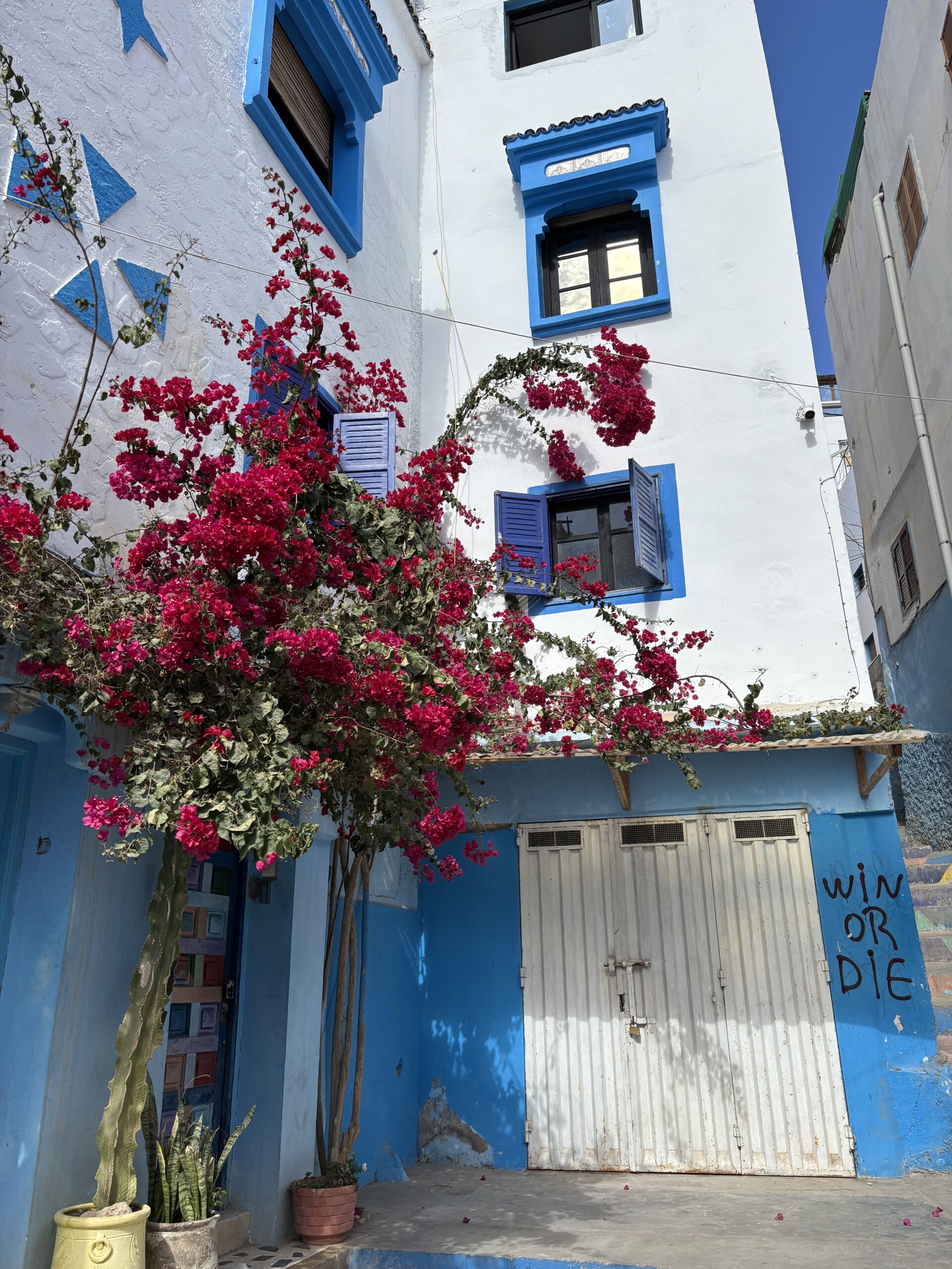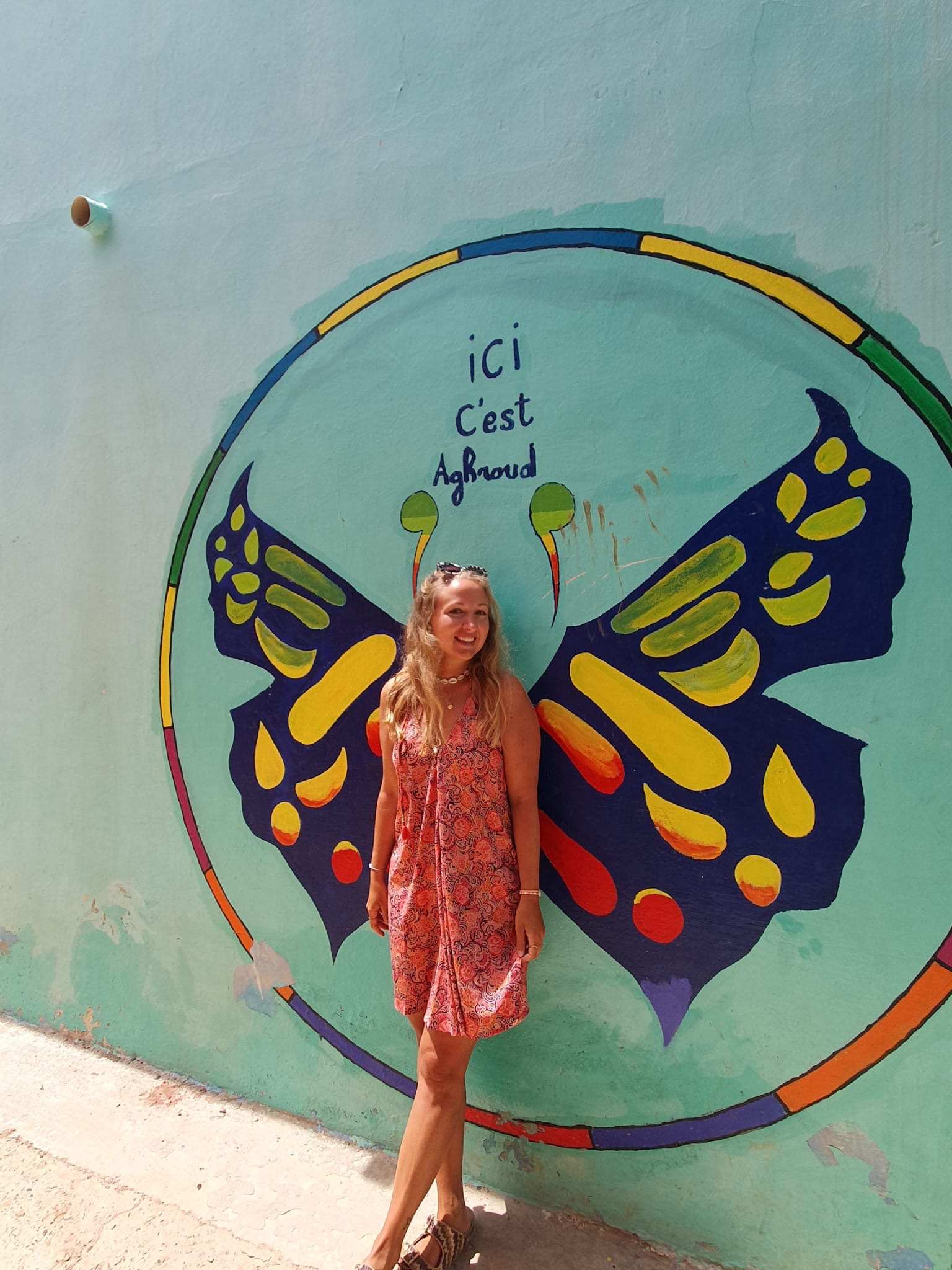 Als ich das erste Mal Ende Dezember letzten Jahres in Taghazout ankam, konnte ich meinen eigenen Augen nicht trauen. Ich war überwältigt von den ganzen Eindrücken auf der Straße. Es war schon abends und ich machte einen Spaziergang durch den kleinen Ort. Es war noch sehr mild, die verschiedenen Gerüche der Streetfood-Stände machten mich direkt hungrig und mein Herz, welches gerade aus dem deutschen Winter kam, wurde durch die Gastfreundlichkeit der Marokkanerinen und Marokkaner direkt erwärmt. Jeder wird in Marokko mit einem Lächeln begrüßt – wirklich jeder. Ich lief durch die kleinen Gassen Taghazouts und entdeckte überall etwas Neues – eine Tür war schöner als die andere bemalt, kleine Katzenbabies, die mit mir kuscheln wollten und zwei Straßenmusiker, die mich zum Tanzen aufforderten.