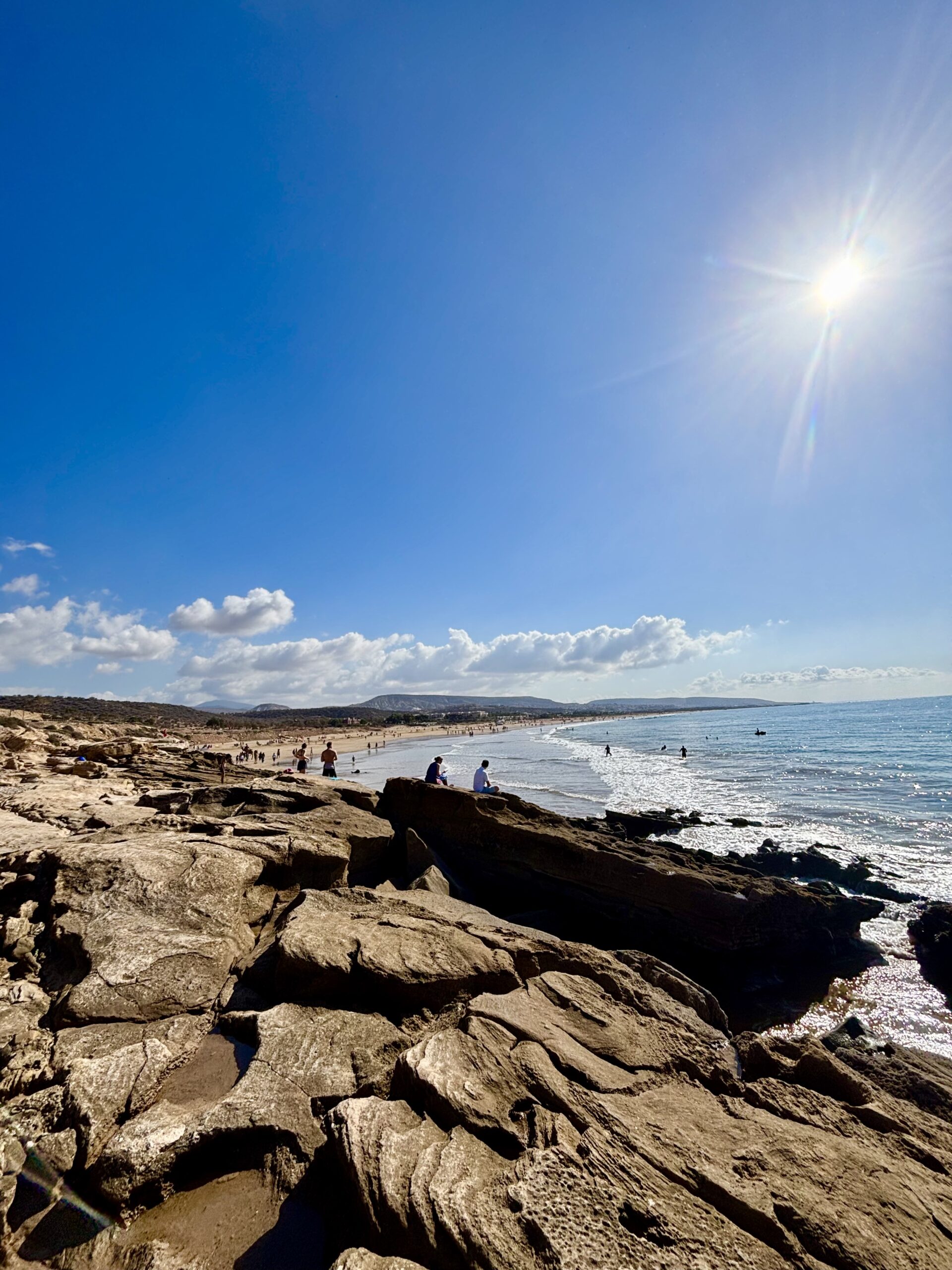 - Im Winter ist es ziemlich warm in Taghazout, wenn die Sonne scheint. Auch wenn die Temperaturvorhersage „nur“ 21 Grad anzeigt, kann es sehr warm in der Sonne werden (das Wasser ist recht kalt, aber man kann im Meer baden). Abends kann es aber durch den Atlantikwind kühler werden. Nimm dir also kurze und lange Sachen mit.