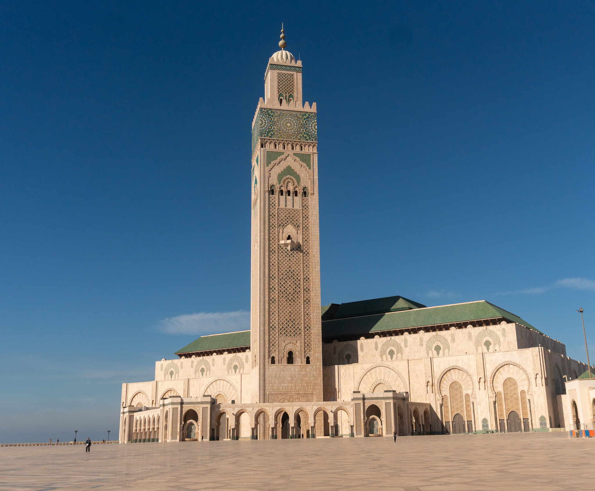 Als wir in Casablanca angekommen sind, sind wir ein bisschen durch das Zentrum spaziert und dann zur Hassan II – Moschee. Casablanca ist direkt ganz anders als Marrakesh. Man spürt hier wirklich den französischen Einfluss von früher: die Art-Déco-Architektur, gepflegte und grüne Parks, Cafés, eine Straßenbahn und Austern. Außerdem ist Casablanca die größte Stadt Marokkos und das Zentrum der Wirtschaft – das merkt man auch direkt. Man sieht viele Geschäftsleute in Anzügen, die in einem schnellen Schritt und Handy am Ohr auf der Straße langgehen und im Hintergrund die hohen Hochhäuser.