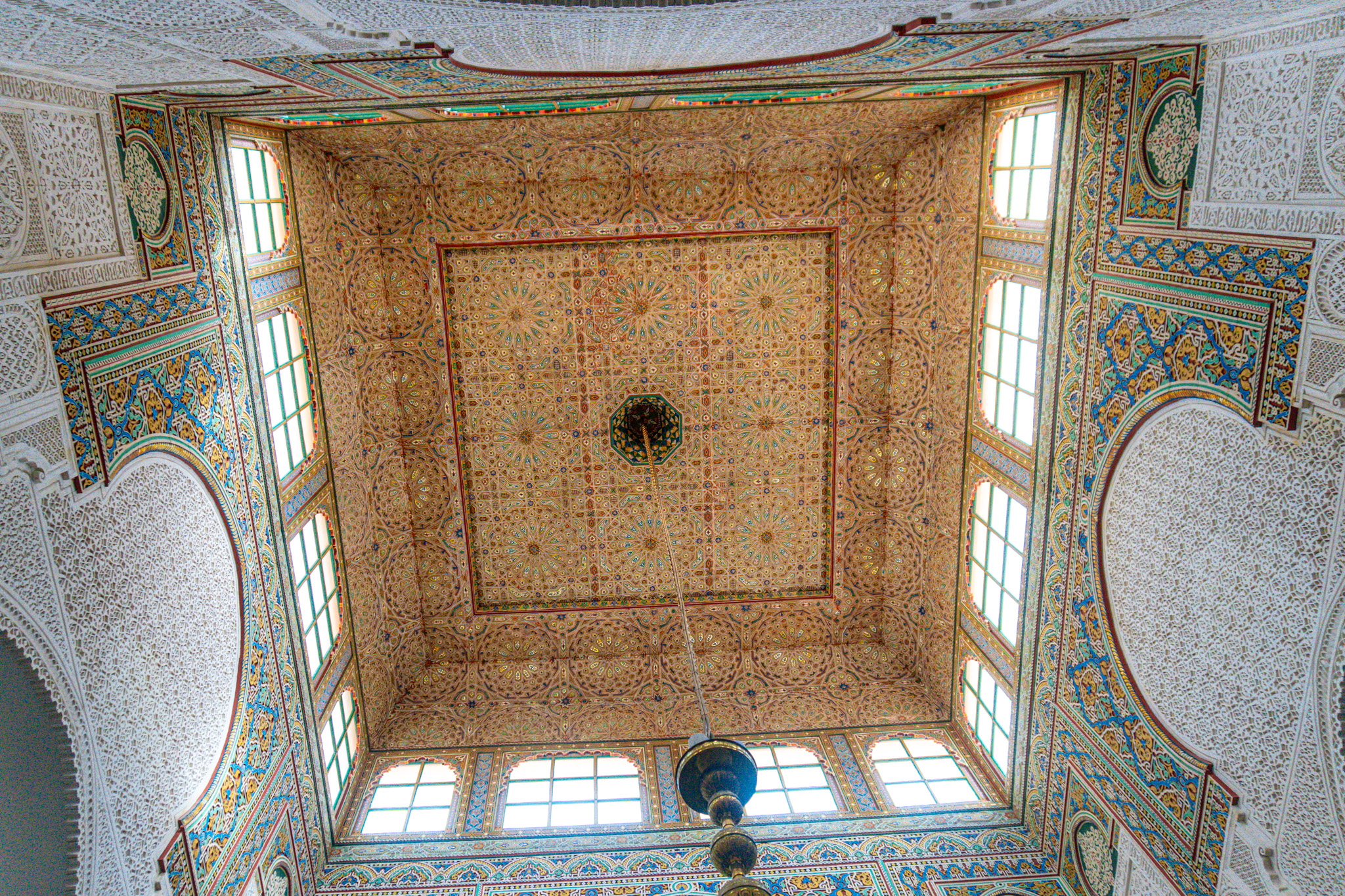 Nach dieser tollen Lerneinheit ging es auf den Souk – den größten Souk in Afrika. Hassan führte uns durch die vielen schmalen Gassen, wo wieder mal alle möglichen Sachen verkauft werden und plötzlich gab es einen Eingang zur Koranschule „Bou Inania Madrassa“, welche zugleich eine Moschee ist. Sie wurde 1350 dort errichtet und mit feinsten Zellij-Mosaiken, geschnitztem Zedernholz und kunstvollem Stuck verziert, was sich bis heute gehalten hat. Unglaublich, wie viel Geschichte in diesem Gebäude und allgemein dieser Stadt steckt.