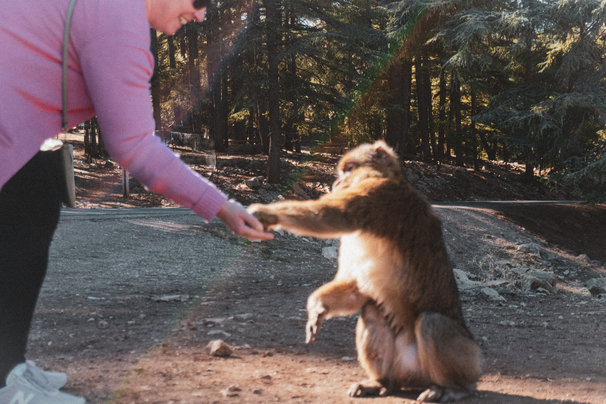 Danach setzten wir unsere Fahrt fort und der nächste Stopp war ein sehr besonderer Stopp: Wir sahen Berber-Affen!! Sie kamen direkt angelaufen, weil da mehrere Leute waren, die auch Futter verkauften. Wir machten ein paar Fotos und die Fahrt ging weiter.